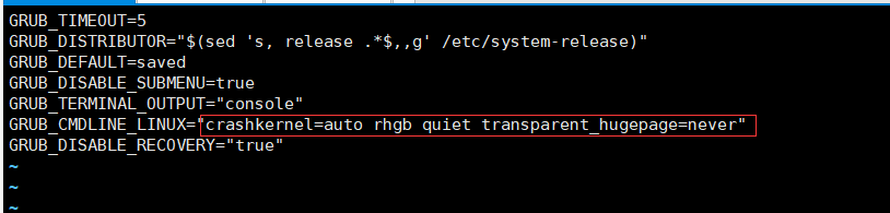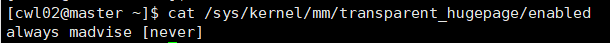 ④:重启后输入:cat /sys/kernel/mm/transparent_hugepage/enabled