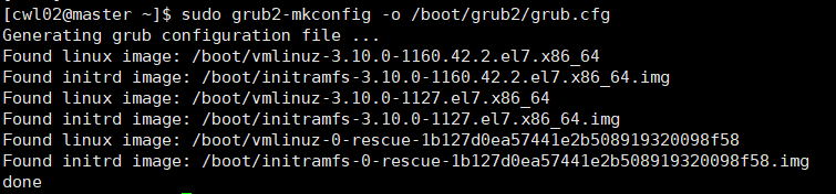 输入:sudo grub2-mkconfig -o /boot/grub2/grub.cfg