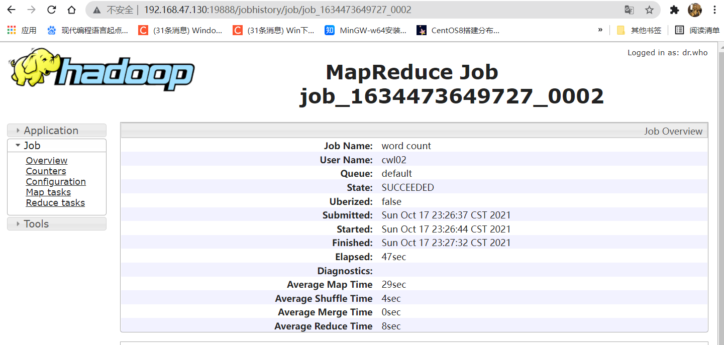输入:hadoop jar /opt/hadoop/share/hadoop/mapreduce/hadoop-mapreduce-examples-2.7.1.jar wordcount /input1/664.txt /output1