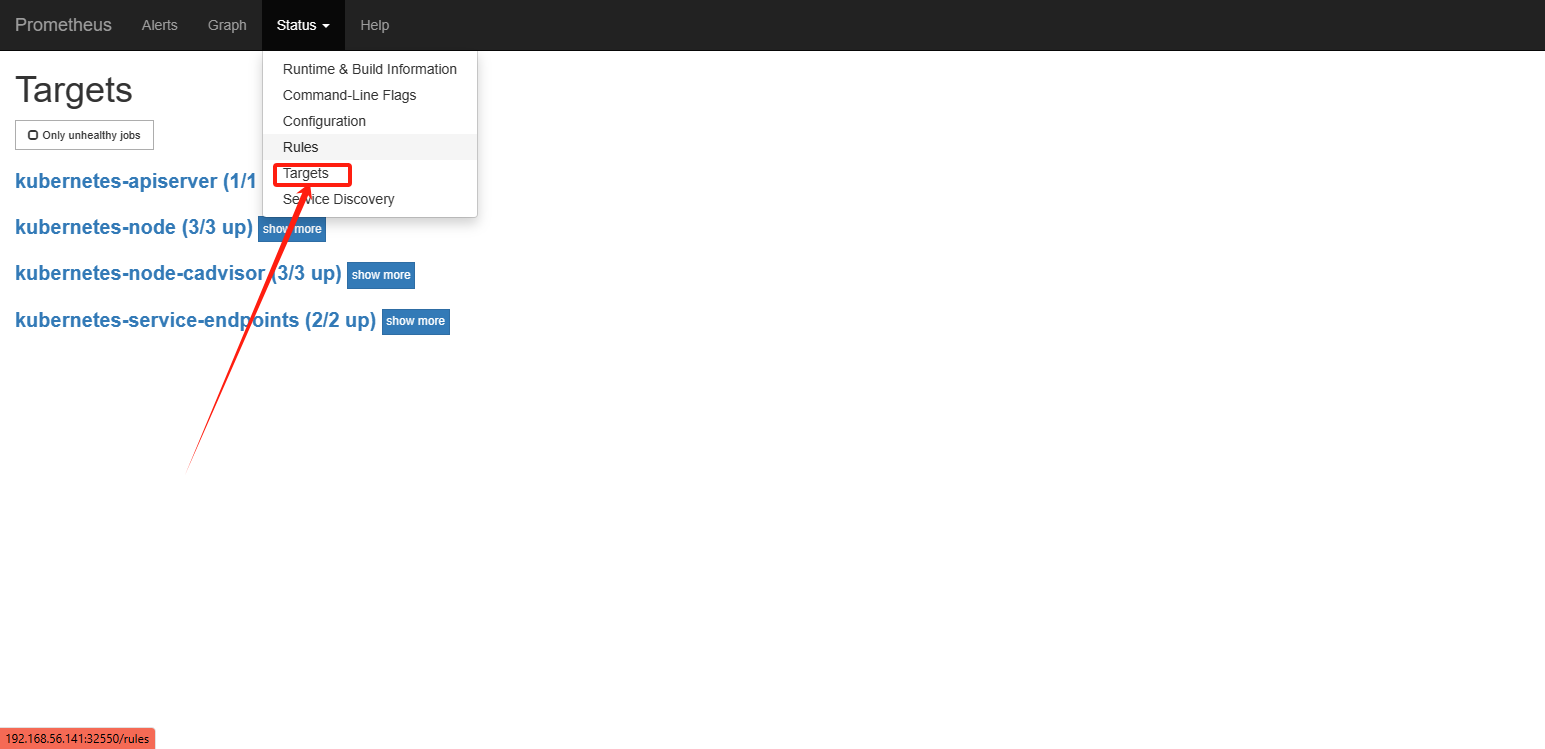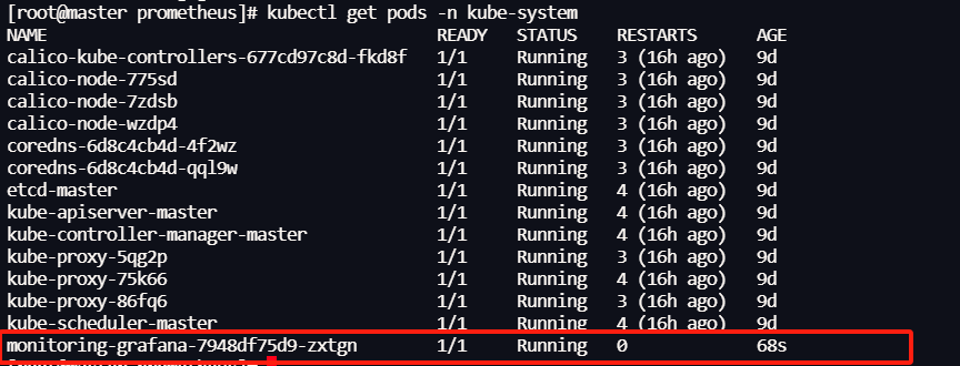 node-exporter-l6vdw 1/1 Running 0 72s 192.168.56.141 master <none> <none>