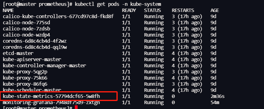 [root@master prometheus]# kubectl apply -f kube-state-metrics-deploy.yaml