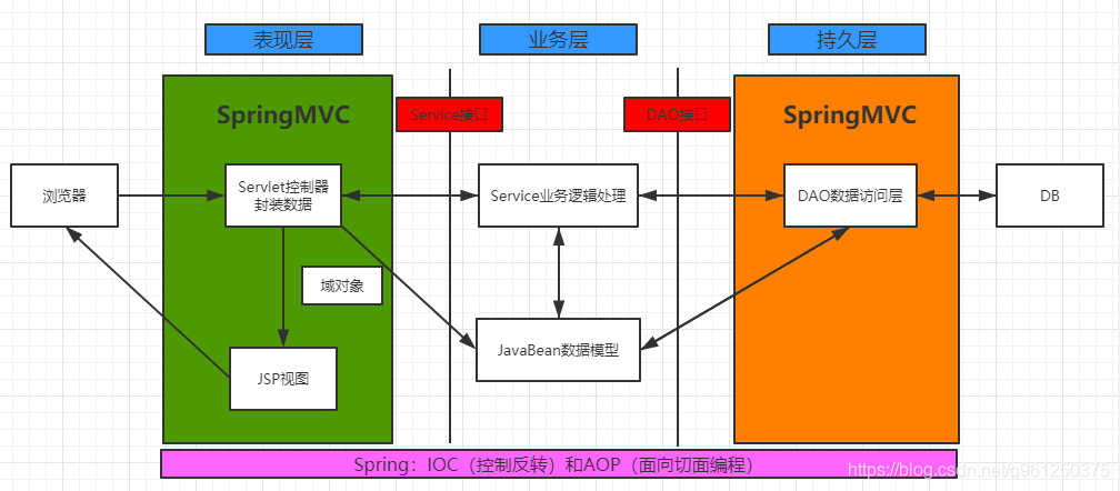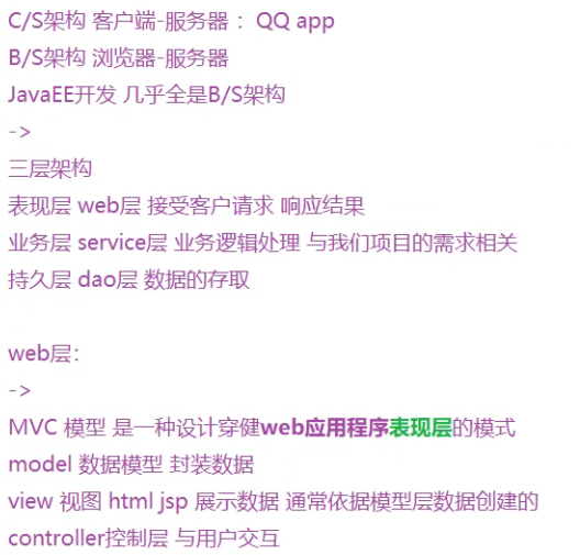 综上两个图得知:B/S架构使用的是三层架构技术,其中的web层即表现层使用的是mvc模型。