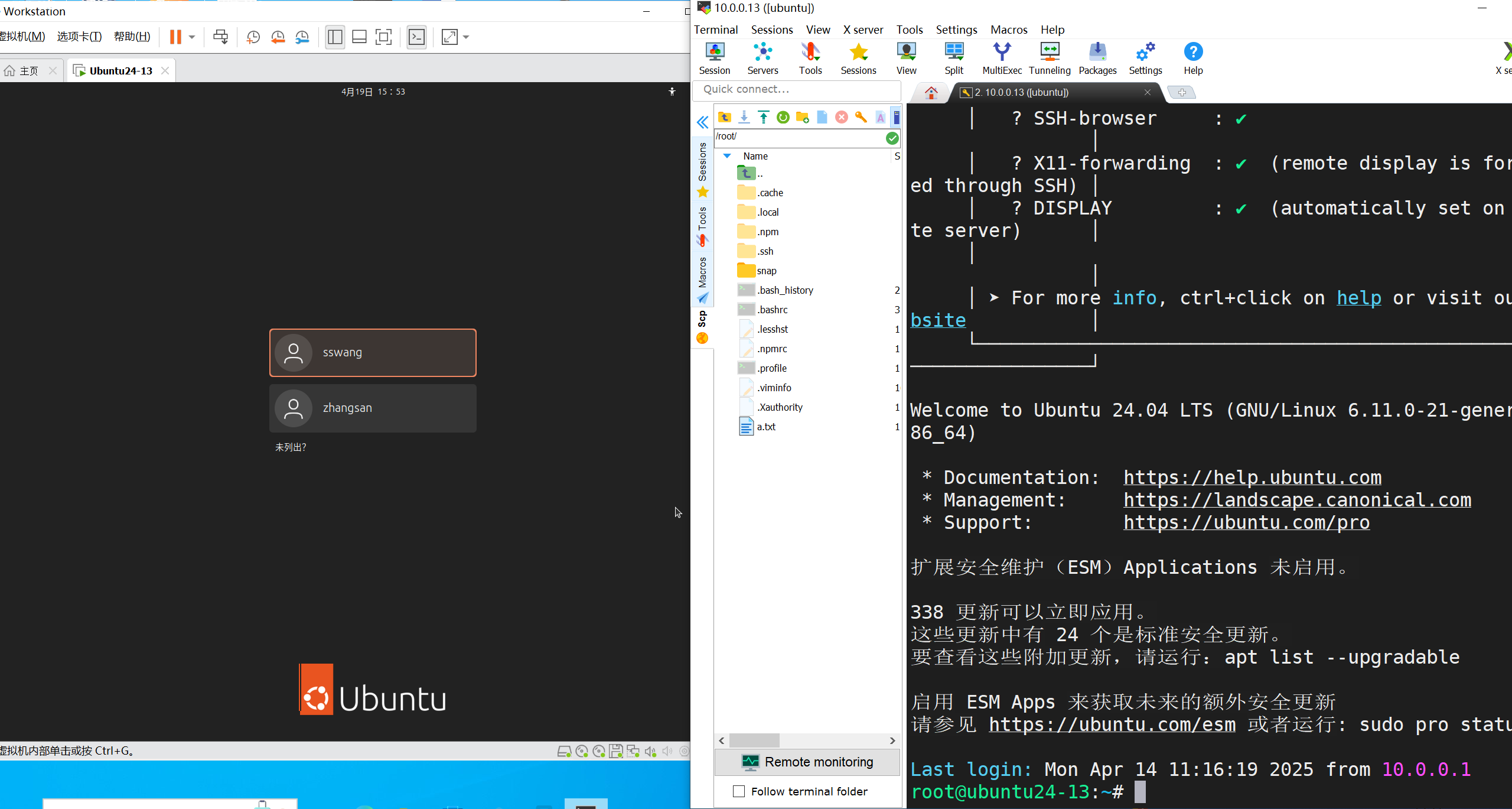 1.下载vmware:登录到https://www.broadcom.com/并注册,进入到个人的专属软件下载页面,点击左边栏的 My Downloads,然后在检索框输入 vmware Workstation,选择Windows系统并挑选想下载的版本,然后根据自行需要操作,例如该盘,然后点击下一步直至安装完成,安装完成后确保电脑开启了虚拟相关服务。下载的系统及ubuntu远程登陆见图。