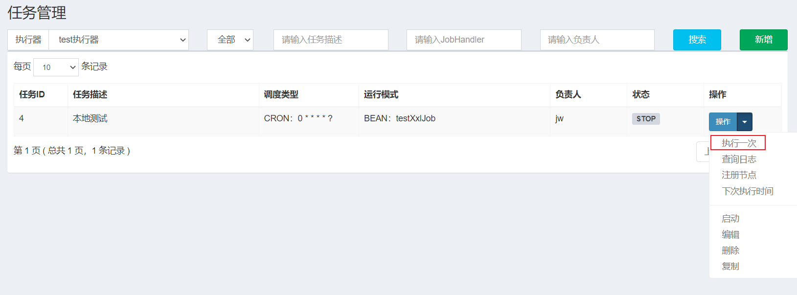 执行任务(本地测试点击执行一次即可,如项目运行,点击启动)