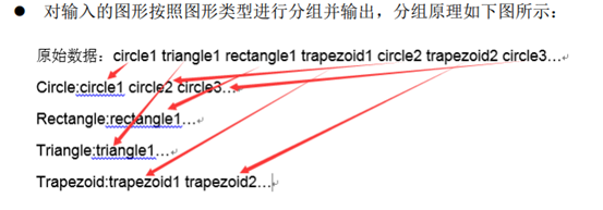 其实说到底就是在7-1的基础上进行修改下即可。我们在上一题是就考虑到了不同的图形,而不同的图形就有它们对应的名称,我们可以在DealCardList类里面的showResult方法进行下分类操作即可,我们通过获取每个图形的名称利用equals方法判断图形的形状分类存入不同的图形的ArrayList里面即可(我是创建了不同图形的ArrayList来存储,这样子可能有点不好吧,感觉有点太过浪费空间资源了,但是我也没有想到什么好的方法)。