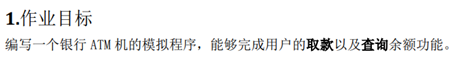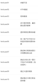 不过在上一题正确答案的基础上修改还是大大降低了难度的。由于正确答案设计的太过完美(作为Java初学者,这是我真心这么觉得),我只需先添加一些增加的用户,银行,账户,卡等等,然后在判断跨行那里修改下就可以了。这里最大的坑就是我们都会认为最大透支50000,那么由于手续费我们是不是取不出来50000,实则不是这样。这里透支50000,就是可以实打实的取出50000,不过因为要手续费,你要欠银行五万多而已(感觉银行好赚啊)。另一个坑就是当我们跨行存取是,收取的手续费由 ATM 机隶属银行决定,这个我还以为是你的卡所隶属的那个银行决定(可能生活经验少了),这里一开始错了,不过发现的早,并没有耽误什么实时间。还有一个我不理解的地方就是当你需要取的钱大于银行卡剩余的钱,而你此时又是跨行时,那么正确理解应该是先透支不够的钱然后再来取款最后来收由于跨行导致多透支的那部分钱,这个我是非常的不理解,最终的代码就应该是这样的: