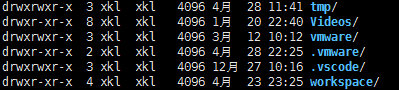 以图片上的第一行为例:drwxrwxr-x 3 xkl xkl 4096 4月 28 11:41 tmp/