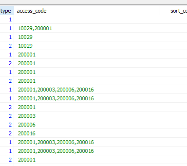 select substring_index(substring_index(a.access_code,',',b.help_topic_id+1),',',-1) as access_code