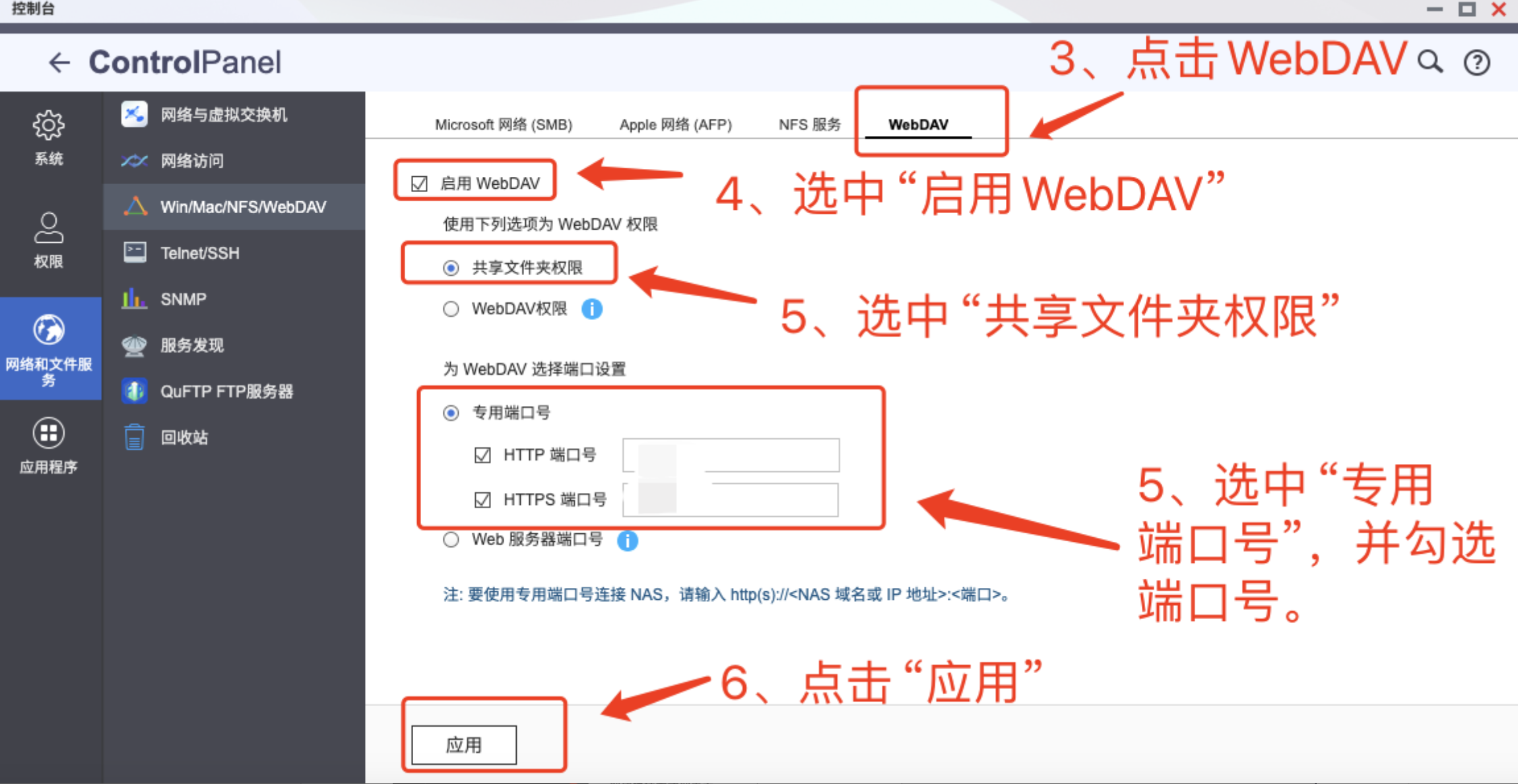 2. 进入WebDAV设置界面,对参数进行设置,如下图所示:
