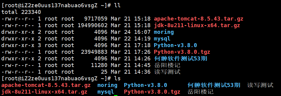 - ll :会显示文件名称,创建时间。