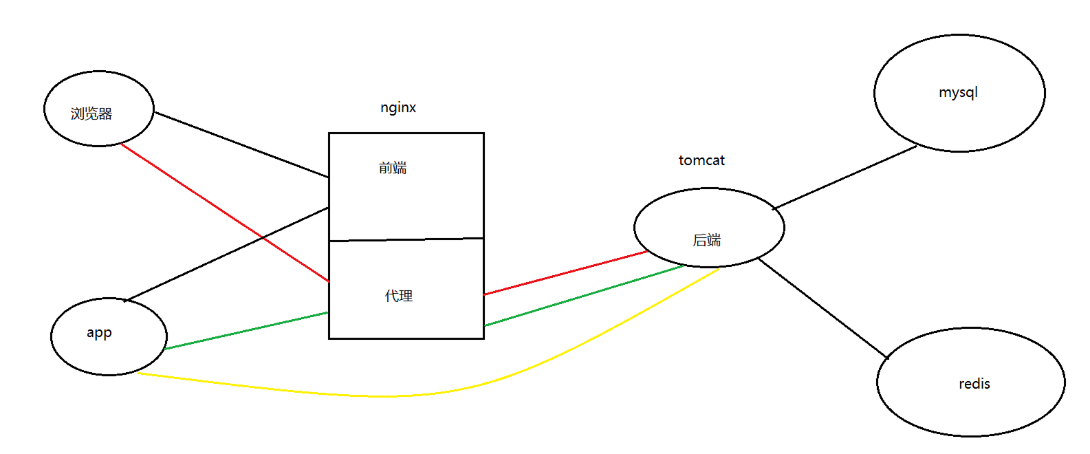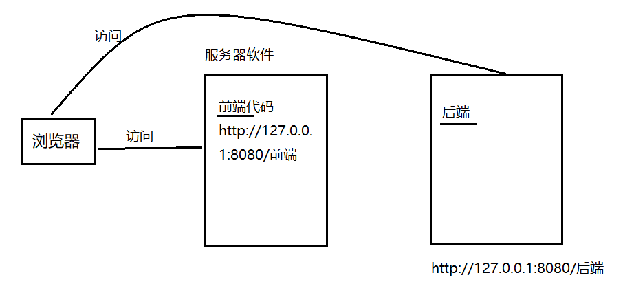 - 用户访问前端,再通过前端访问后端