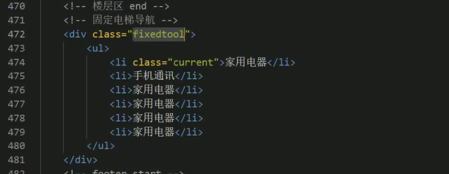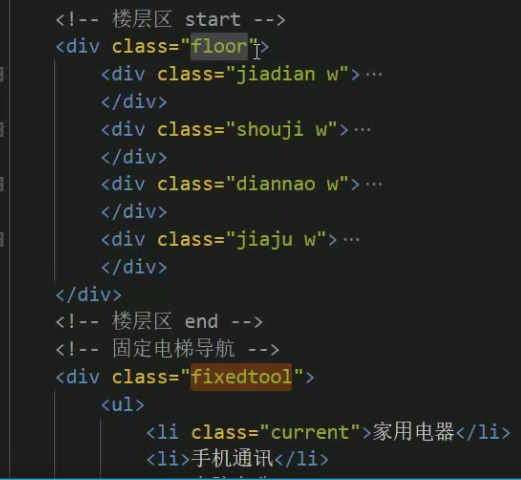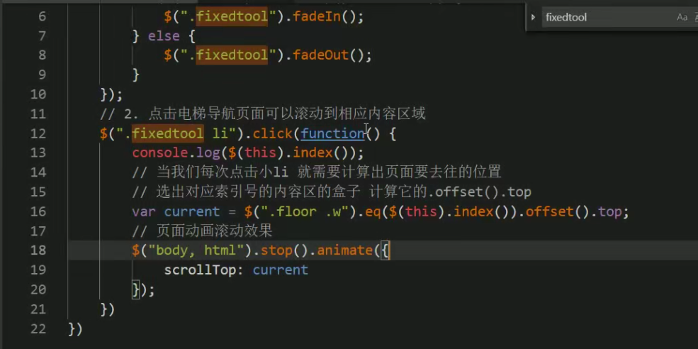 8. 当我们滚动到内容区域某个模块,左侧电梯导航,相对应的小li模块,也会添加current类,兄弟移除current类。