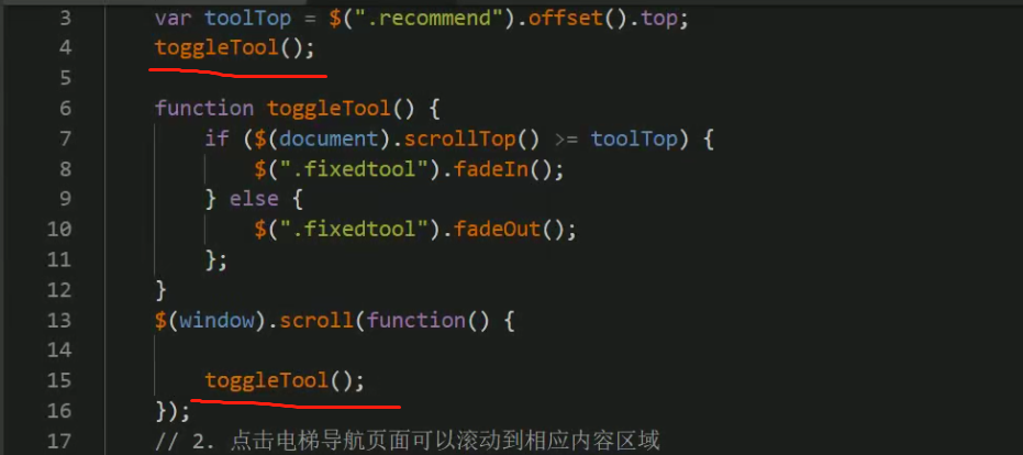 9.触发的事件是页面滚动,因此这个功能要写到页面滚动事件里面。