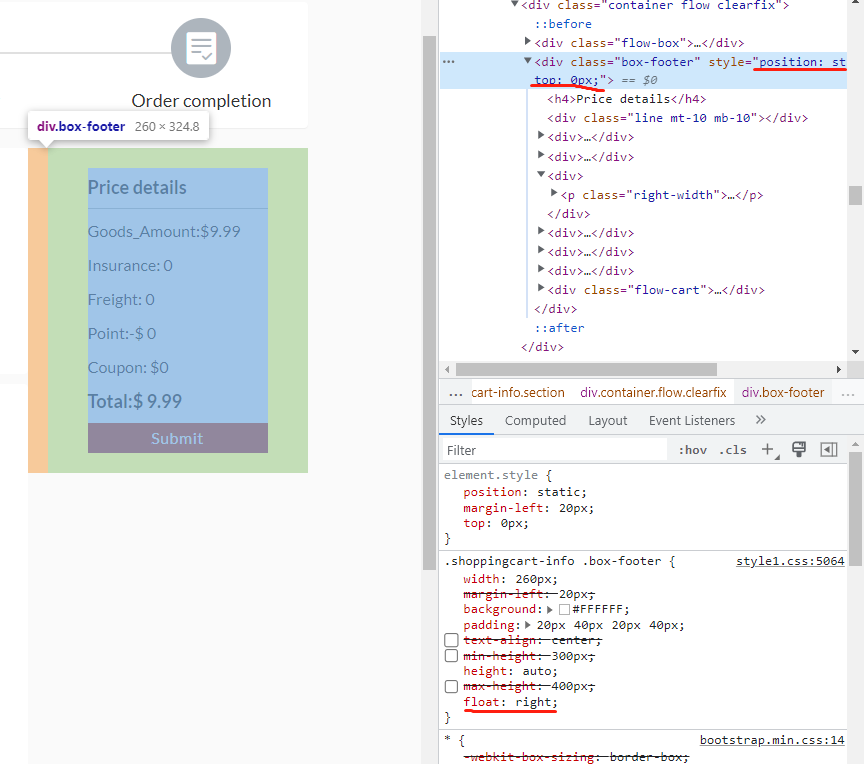 var navH=$('.box-footer').offset().top; $(window).scroll(function (){ var scroH=$(this).scrollTop(); if(scroH>=navH){ $(".box-footer").css({"position":"fixed","top":0,"margin-left":"990px"}); }else if(scroH<navH){ $(".box-footer").css({"position":"static","margin-left":"20px"}) } })