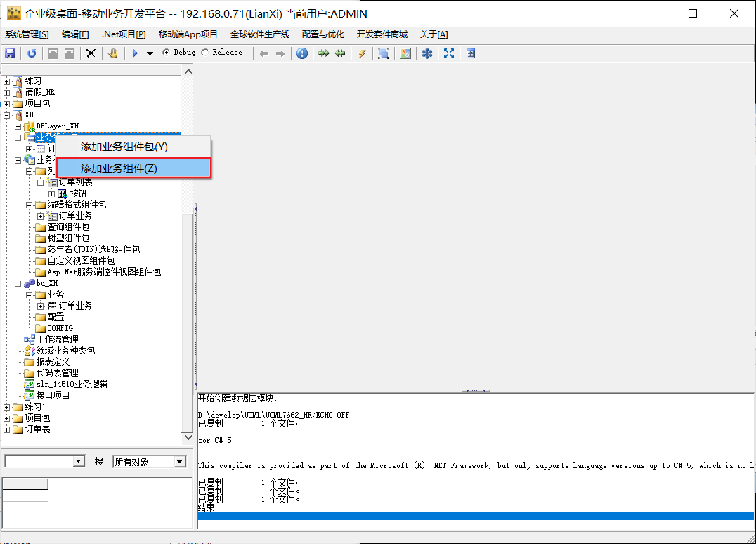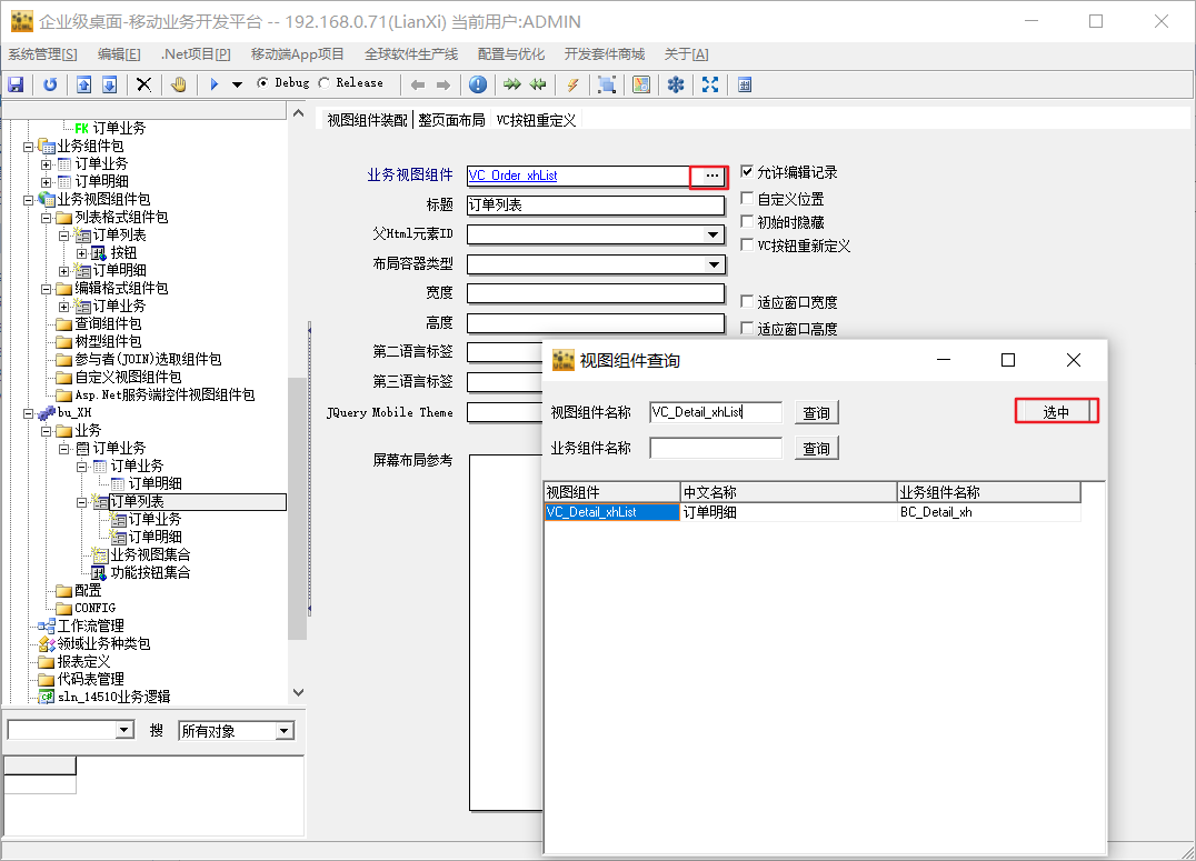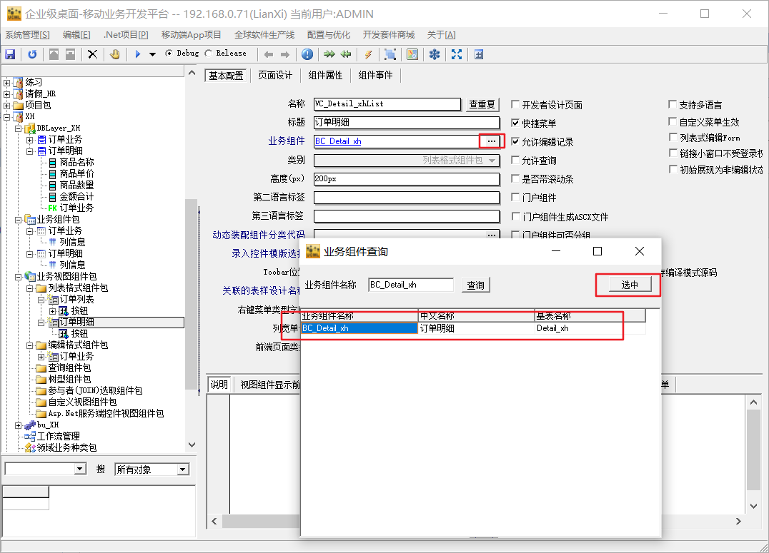 4、添加业务组件