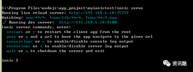 ionic serve(开启服务调试)