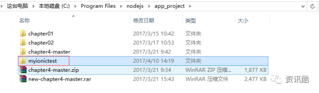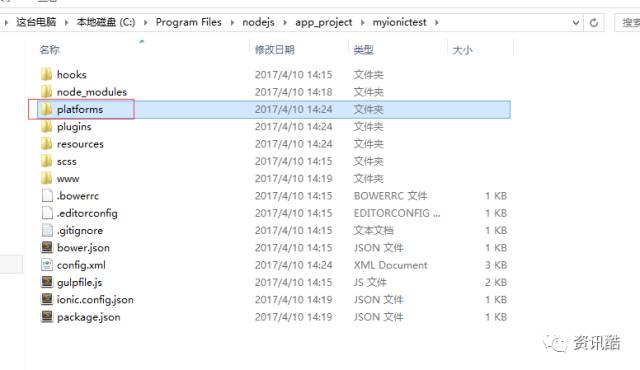 myionictest 就为项目名称,进入myionictest 这个文件夹: