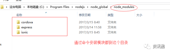 注意:环境变量中path的nodejs路径决定你安装后的目录路径