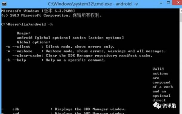 执行android -h看到命令即安装设置成功