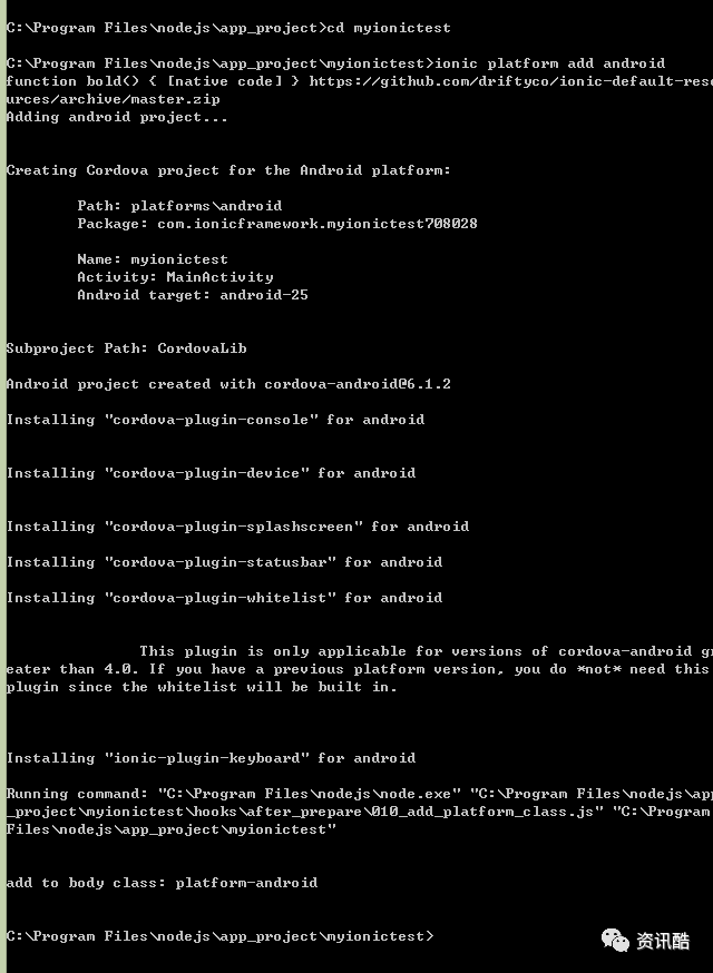 ionic platform add android(添加android平台)