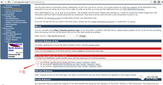 ant下载地址: http://ant.apache.org/bindownload.cgi