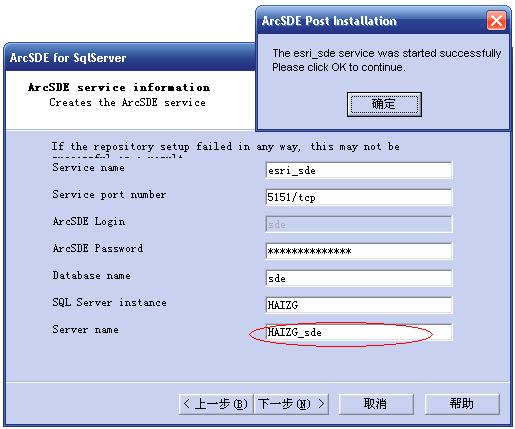 ArcSDE 9.2安装最后一步如图,Server name一栏默认的时候会出错,改个名字就能行,不知道为什么