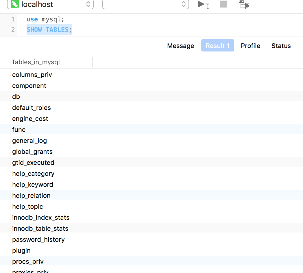 1.查询数据库中的所有表