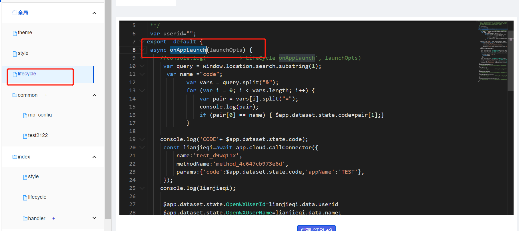 我们可以在低代码编辑器中在全局中的生命周期中添加代码,我是添加在onAppLaunch中,