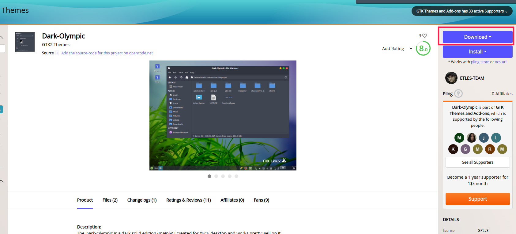 比如我这里找到Dark-Olympic这个主题。点击下载