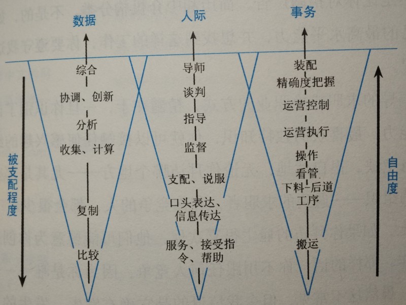 这些能力,是工作的基石,是选择任何职业的根本。你的可迁移能力水平越高,工作就越自由,被支配程度就越低。下面的图表很好地说明了这一点: