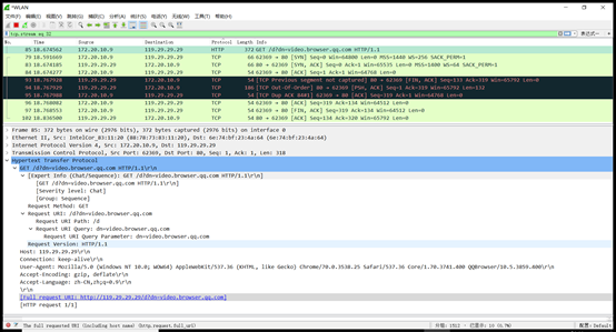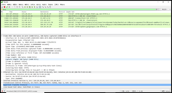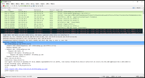 使用wireshark软件,开始抓包,打开任意http数据包,其应用层如下