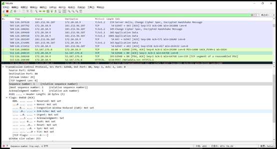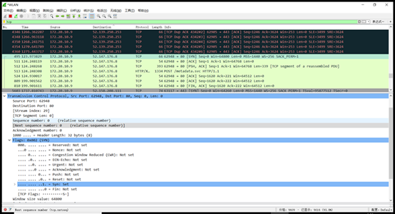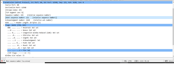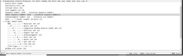 Sequence number=上一帧的Acknowledgment number