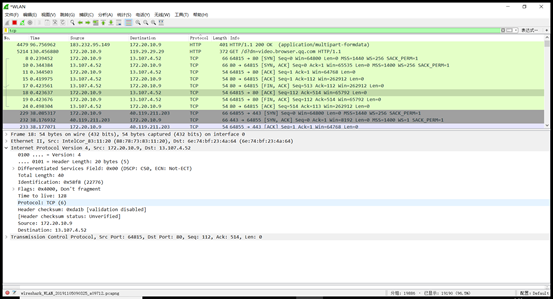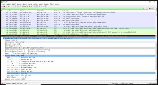 (1) 源地址:172.20.10.9 目的地址:13.107.4.52