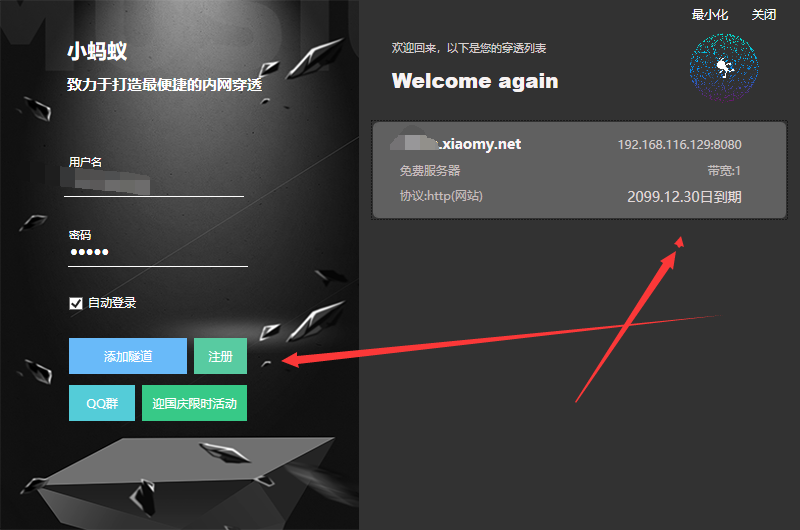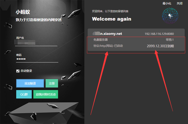 工具推荐:我是用的是网云穿。可以免费申请1M使用。白嫖就行。