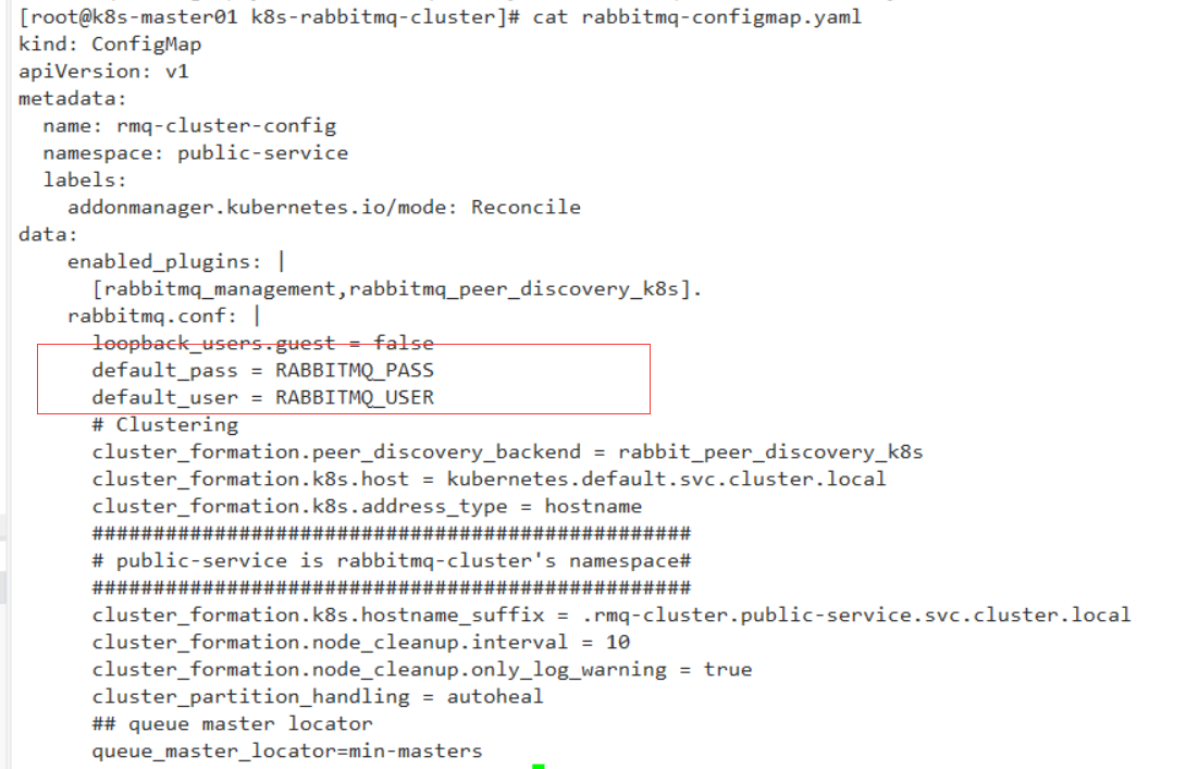 在rabbitmq-configmap.yaml配置,添加这两个字段,解决密码不生效的问题