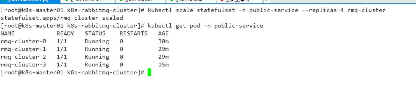 kubectl scale statefulset -n public-service --replicas=4 rmq-cluster
