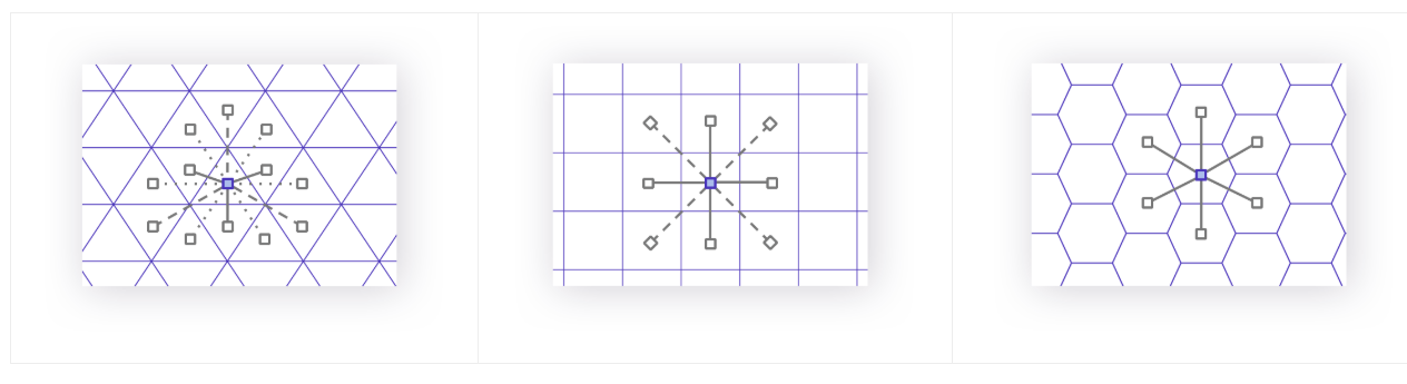 六边形网格与周围网格的距离有且仅有一个,而四边形存在两类距离,三角形有三类距离3.1 h3的特点