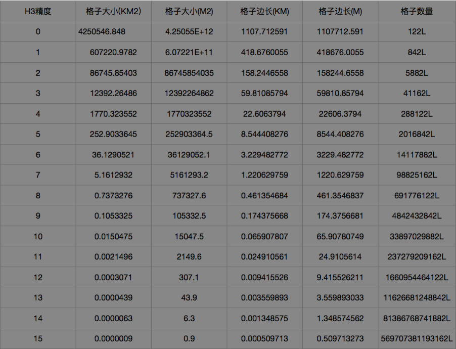 精度说明:0-15个精度级别,六边形区域要为9m 那就是选择精度12-----》对应的格子边长为0.00941km=9.4m