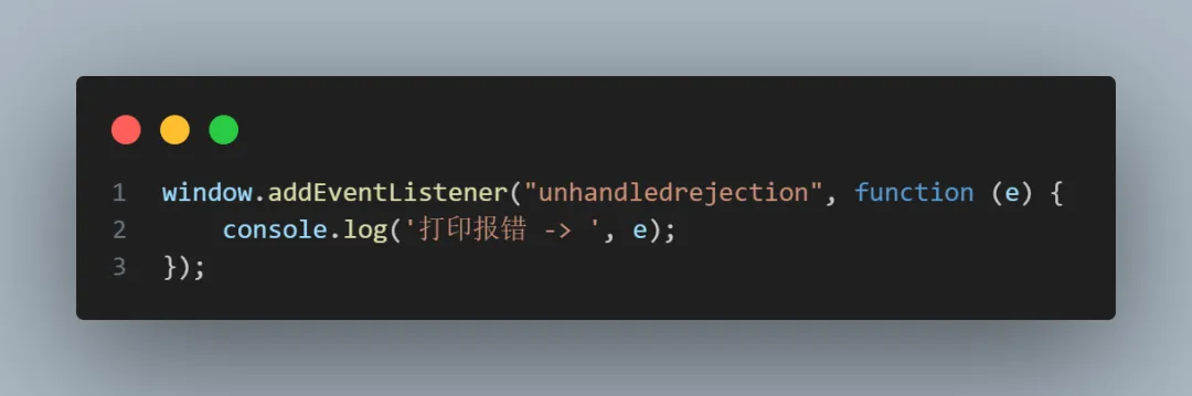 无论是 Promise、async/await 归根结底都是 Promise异步报错,都可以使用 window.addEventListener('unhandledrejection') 来捕获错误