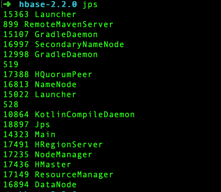 请于bin目录下启动hbase,执行脚本start-hbase.sh。