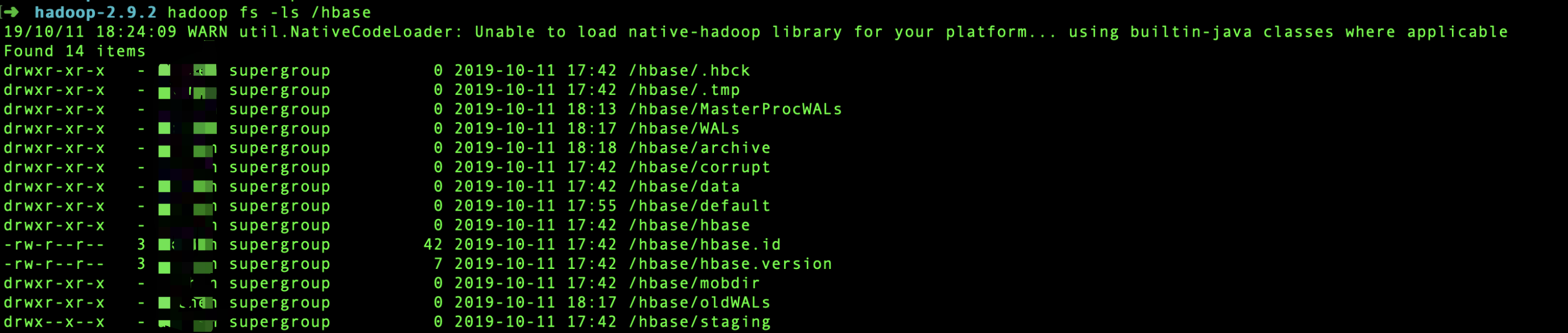 步骤1中配置的HBase根目录在HDFS中/hbase目录下,目录结构如下: