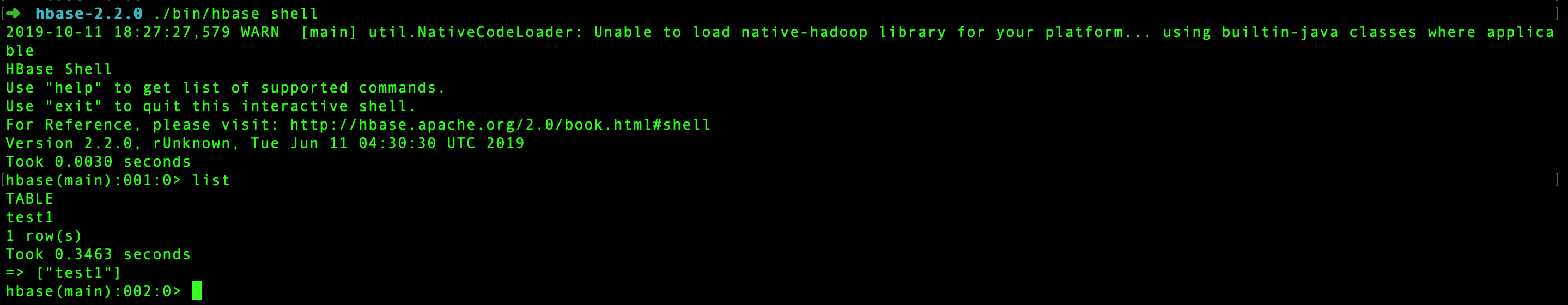 bin目录下提供了访问hbase的操作脚本,执行 hbase shell进入HBase Shell。