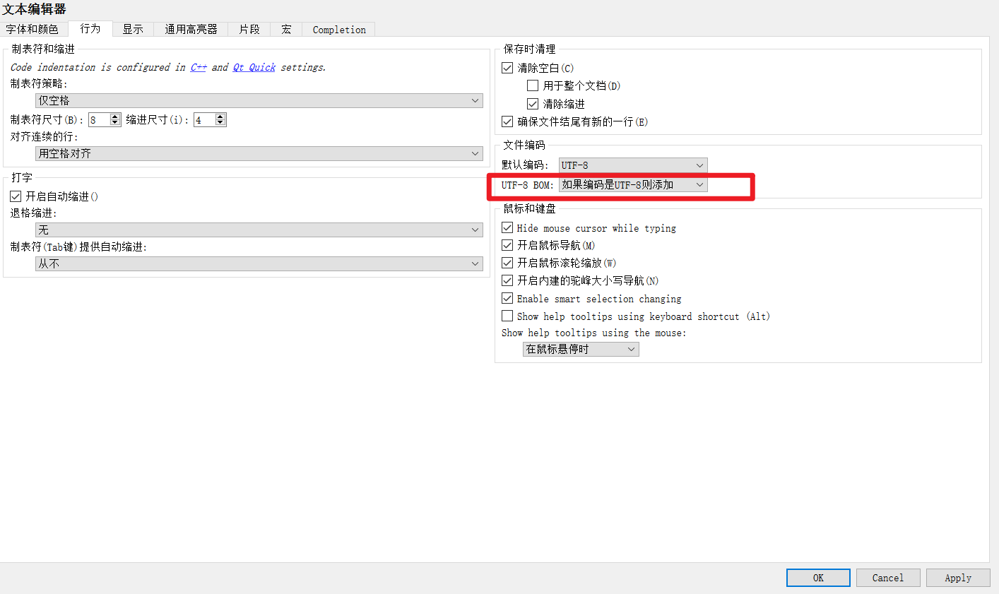 在输入中文的文件(cpp/.h)