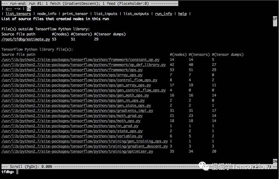 TensorFlow debugger(简称 tfdbg)是 TensorFlow 的专用调试器,它可以让你看到运行 TensorFlow graph 时的内部结构体和状态。有了这个神器就如同调试普通 Python 程序一样调试 TensorFlow 程序了!