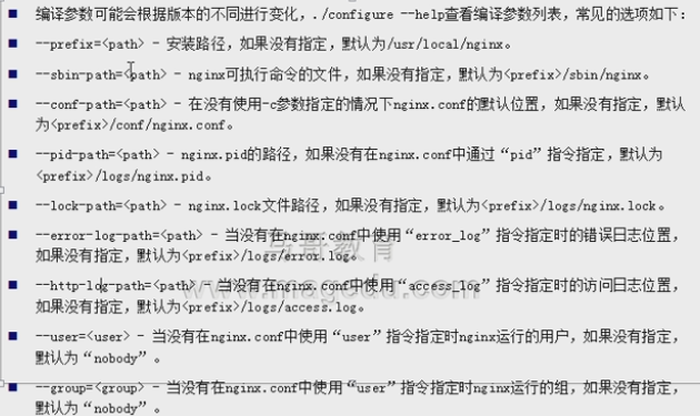 # 创建日志目录 # mkdir /var/logs/nginx # ./configure --help # 编译配置的帮助文档