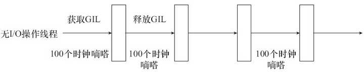 但如果是纯计算的程序,没有I/O操作,解释器则会根据sys.setcheckinterval的设置来自动进行线程间的切换,默认是每隔100个内部时钟就会释放GIL锁从而轮换到其他线程: