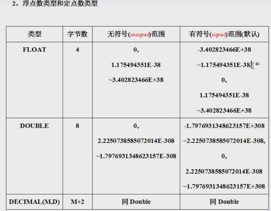 1.数值类型:整数类型、浮点数类型、定点数类型