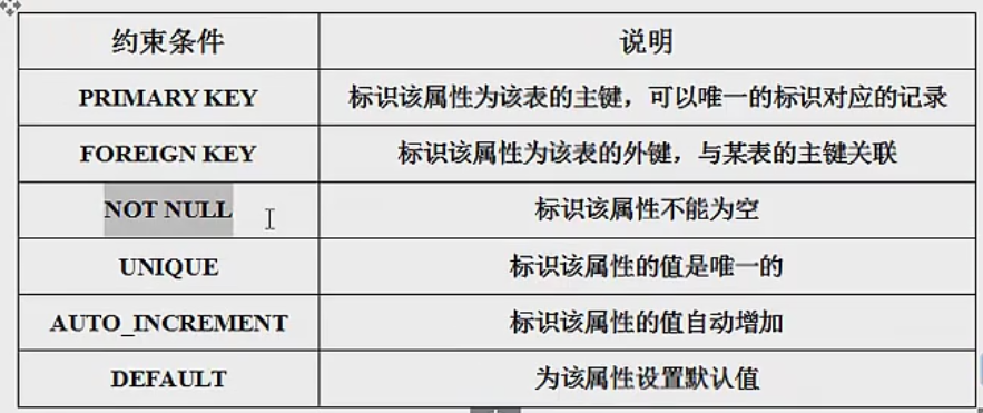 创建表:create table 表名 (属性名 数据类型 [完整性约束条件], 属性名 数据类型 [完整性约束条件], .............)