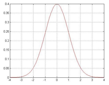 高斯分布图:大部分取值在-1和1之间,越接近-4和4两端的分布越少