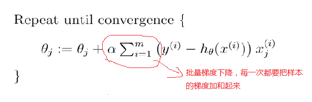 上面每次更新变量,都要把所有的样本的加起来,数据量大的时候效率不高,下面还有一种就是按单个样本进行优化,就是随机梯度下降: